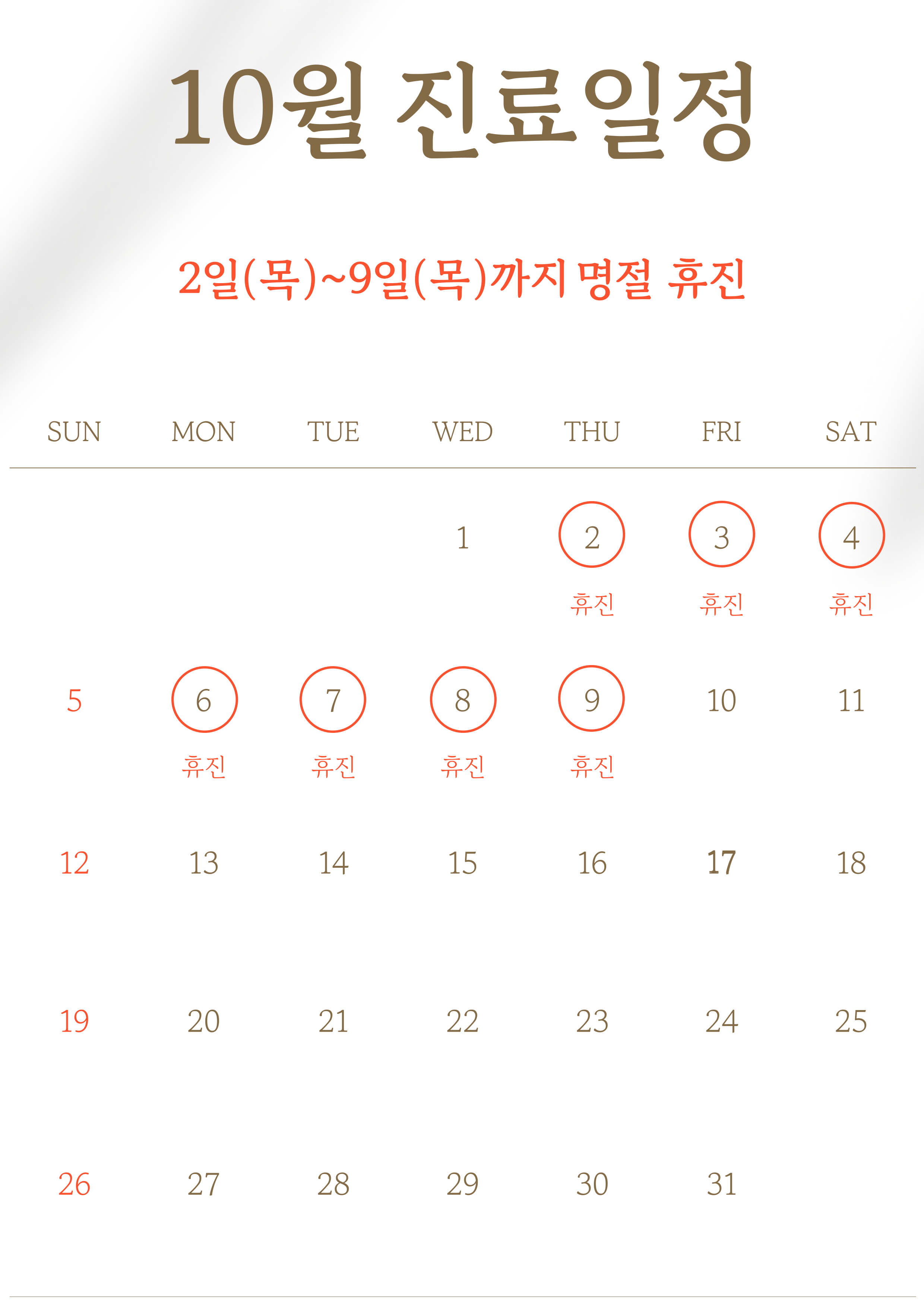 일요일, 공휴일: 휴진