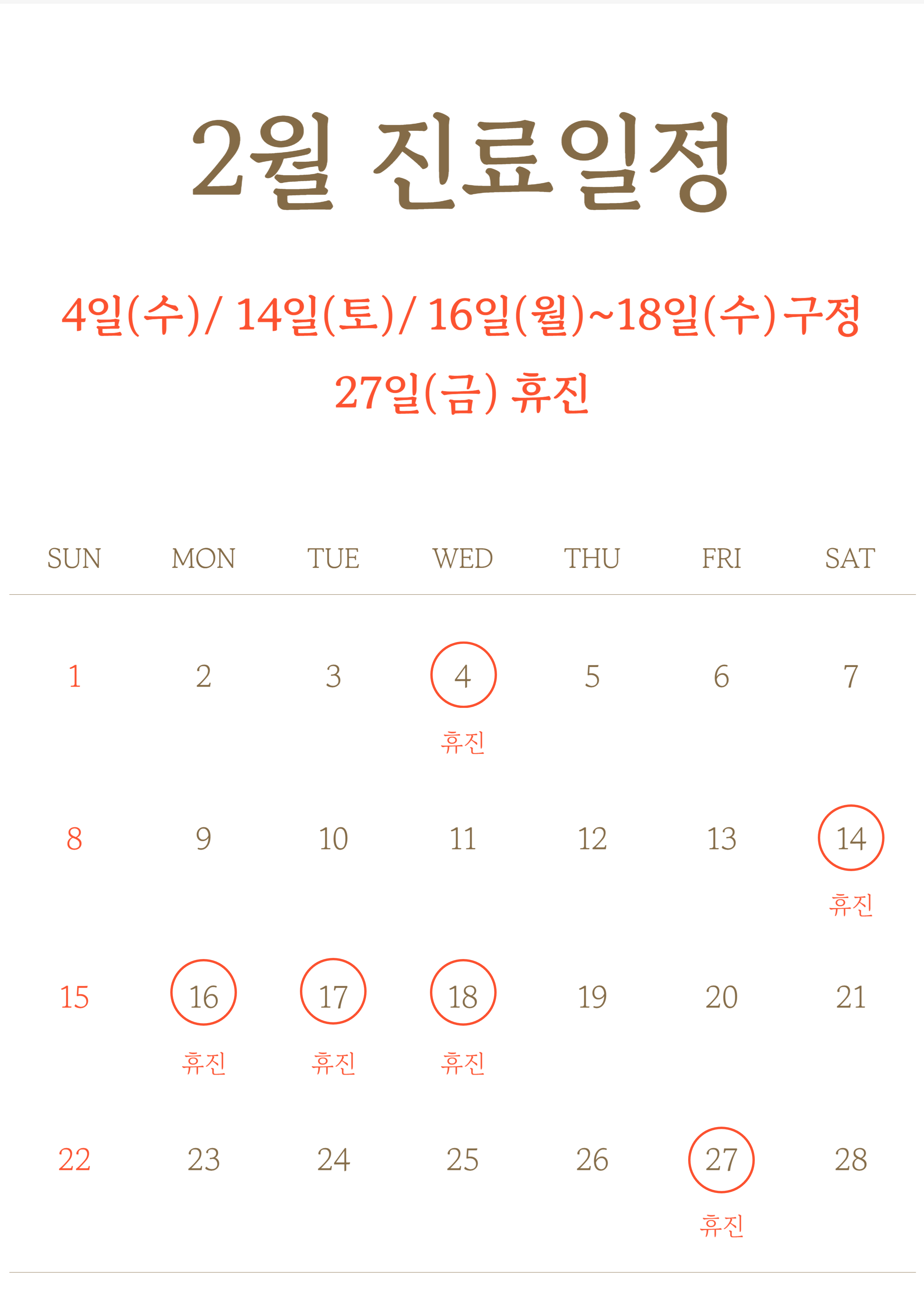토요일: am 10:00 ~ pm 02:00 (점심시간 없음)