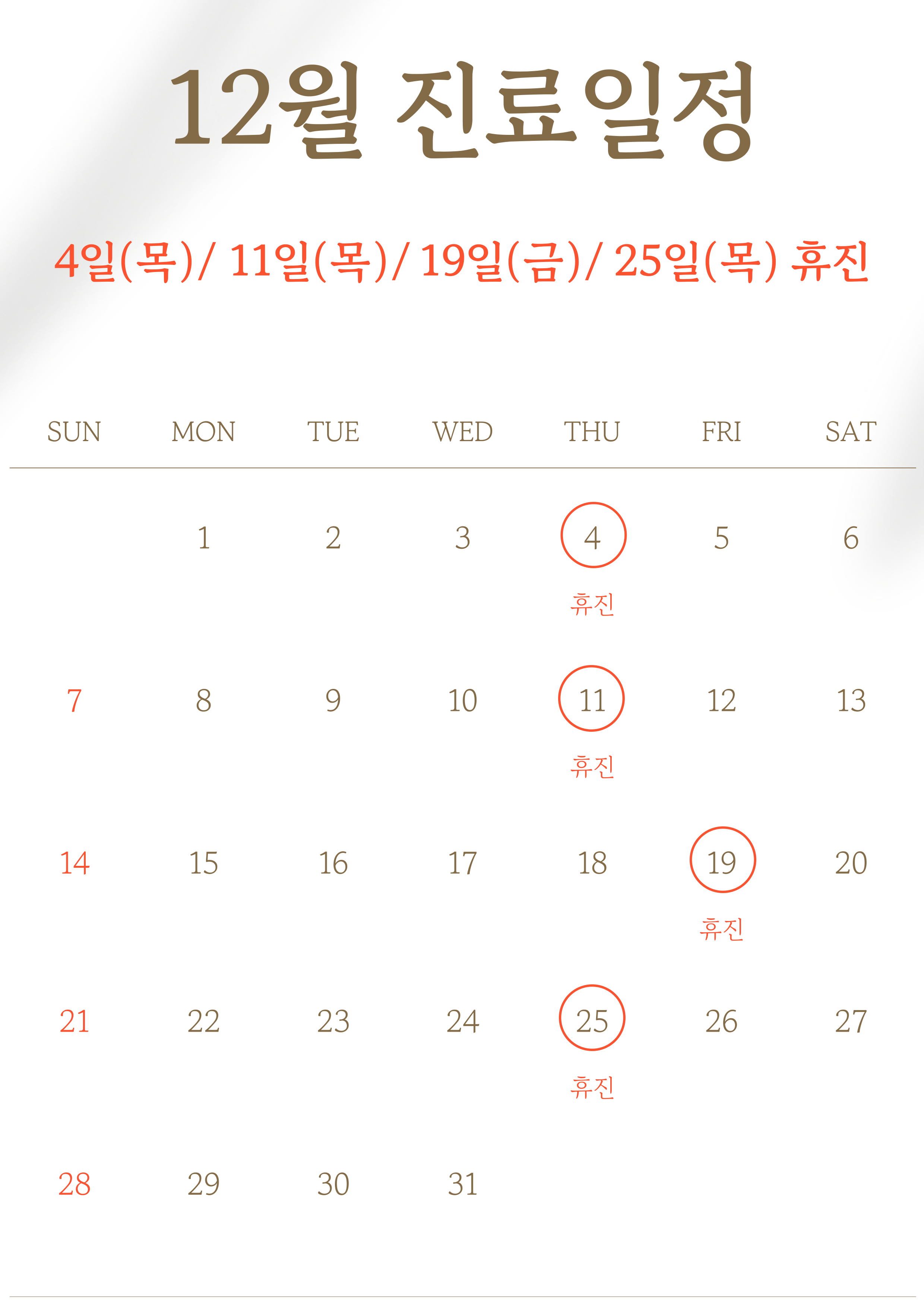 일요일, 공휴일: 휴진